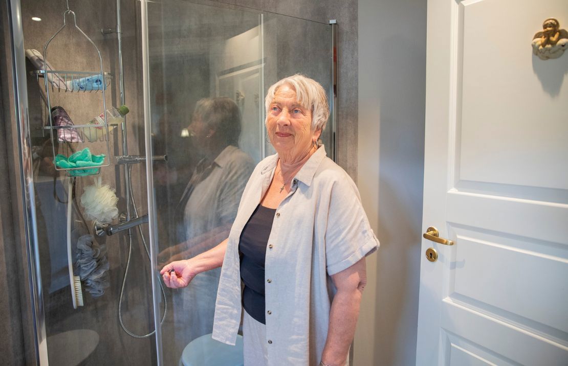 Styreleder Elisabeth Foss gleder seg stort over at hun har fått nytt og moderne baderom.