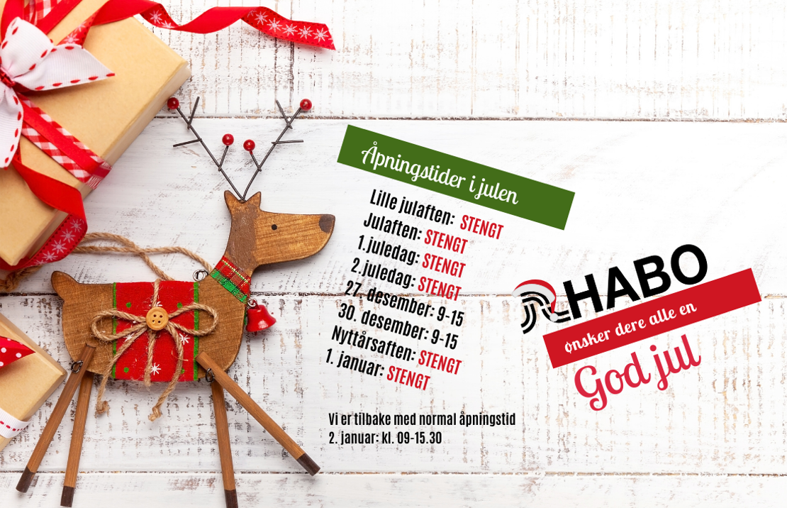 Skal du kontakte oss eller komme innom i julen, så er det lurt å ta en titt på åpningstidene våre. Vi er tilbake til det "normale" fra 2. januar. Vi ønsker dere alle en riktig god og trivelig jul.