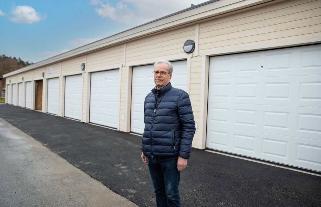 Styreleder Stein Erik Murud kan fornøyd konstatere at også de ti siste garasjene er blitt fornyet med moderne utgaver.
