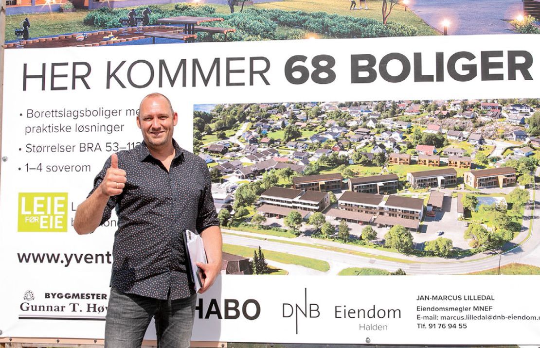 Interessen for prosjektet på Yventunet har vært stor helt siden det første informasjonsmøtet vi hadde på Quality hotell 17. oktober 2019. – Alle 68 boenhetene er siden den gang blitt solgt før de var ferdigstilt. Det vil si at vi ikke har hatt en eneste visningsleilighet, sier DNB Eiendom Haldens eiendomsmegler Jan-Marcus Lilledal.