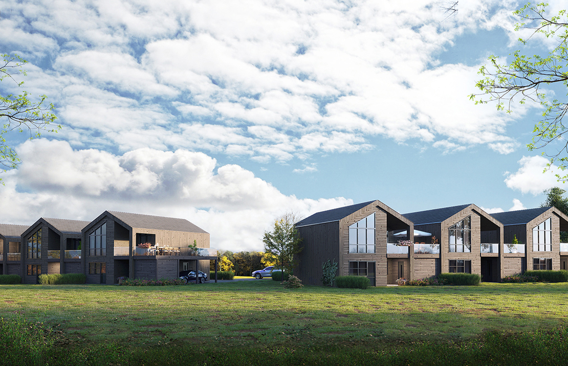 Prosjektet vil bestå av 6 eneboliger i rekke fordelt på 2 bygg. Boligene er delt med carport imellom.